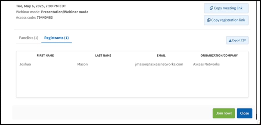 1. You and all those added as participants will receive an email invitation with the meeting link and access code for your account, along with all the details they need to join your conference.