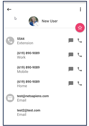 - Clicking the Star icon will toggle the favorite status of the contact.