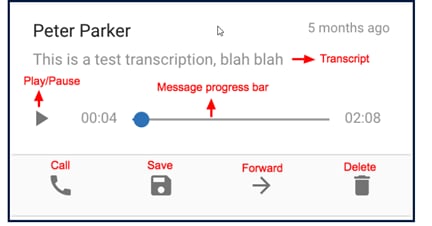 Transcript – the message transcript will be displayed, if available, directly below the caller name