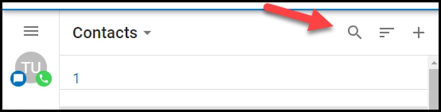 To filter/search contacts, click on the magnifying glass in the upper right, then type in the name to filter.
