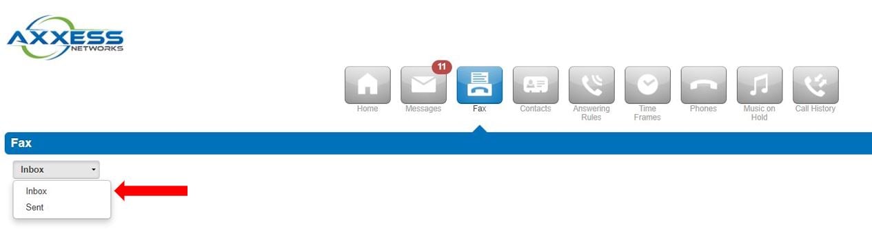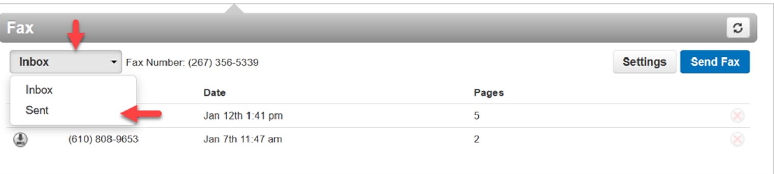 To see your recently inbox faxes, click the Inbox Icon and select Sent.